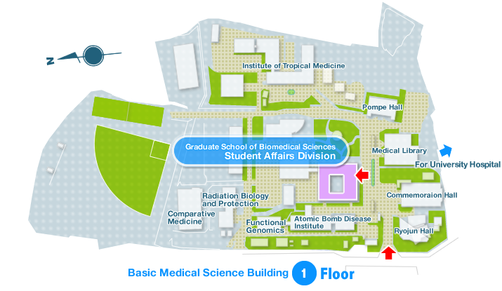 | Public bus : | "Nagasaki Station"→(No.8 bound for Shimo-oohashi via School of Medicine) → "Daigakubyoin-mae" or "Igakubu-mae" |