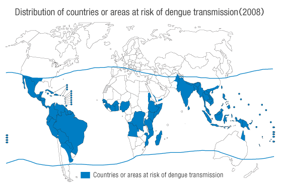Tropical region infectious diseases such as malaria and trypanosomiasis have high mortality rates and are a constant threat in developing countries. Dengue fever infects an estimated 50 to 100 million each year. Of these 500,000 develop severe illness and about 12,500 die.